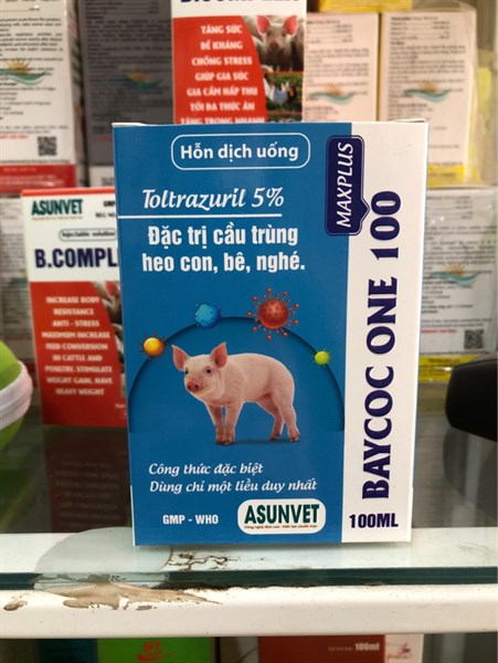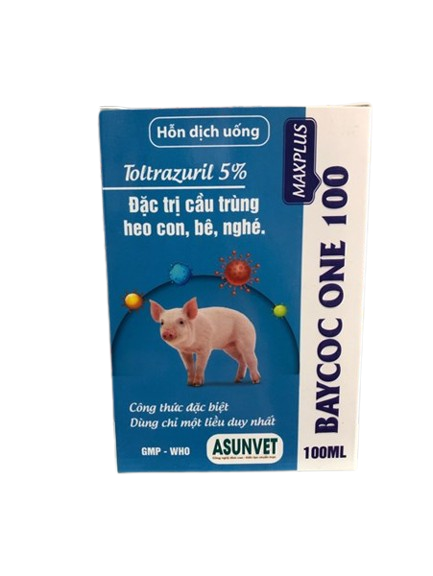BAYCOC ONE 100 MAX PLUS Asunvet – Hỗ trợ kiểm soát ký sinh trùng đường ruột, cải thiện tiêu hóa cho vật nuôiBAYCOC ONE 100 MAX PLUS Asunvet – Hỗ trợ kiểm soát ký sinh trùng đường ruột, cải thiện tiêu hóa cho vật nuôi