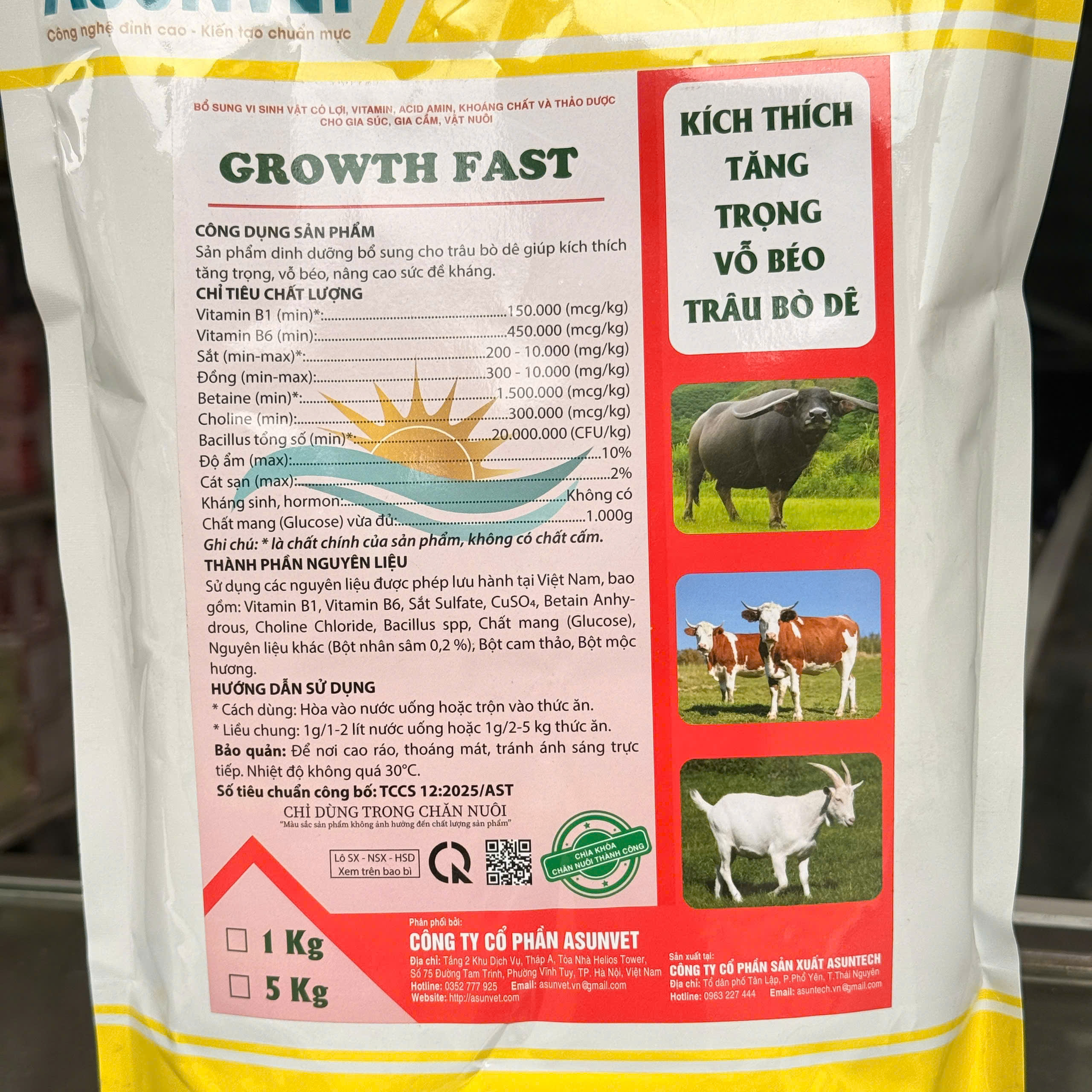 GROWTH FAST Asunvet – Bổ sung dinh dưỡng hỗ trợ tăng thể trạng cho trâu, bò, dêGROWTH FAST Asunvet – Bổ sung dinh dưỡng hỗ trợ tăng thể trạng cho trâu, bò, dê